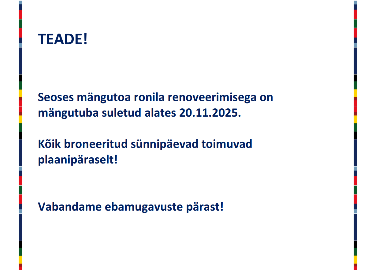 Esmaspäev15.30 korvpall väikesed, treener Jaak Jalakas (suur saal)16.00 taekwondo, treener Ronald Smorodin (matisaal)18.00 võrkpall (suur saal)19.00 […]
